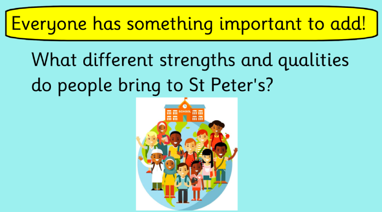 At St Peter’s, Talk Assemblies take place every other Tuesday and are a valued part of our school week. They are designed to give children a regular, purposeful opportunity to talk, listen, reflect and learn from one another.